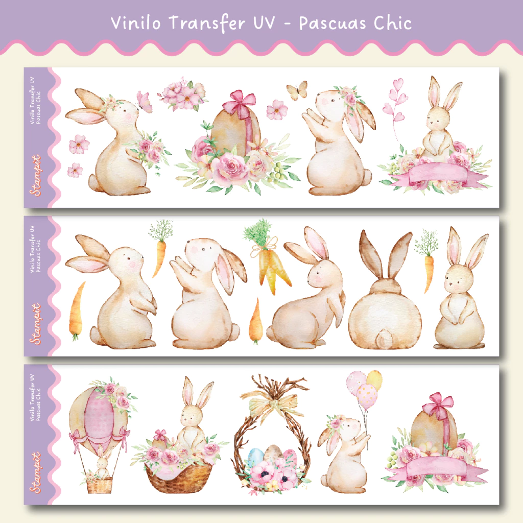 Transforma tus espacios y proyectos creativos con nuestros Sticker Transfer UV - Pascuas Chic. ¡Haz tu pedido hoy y disfruta de la facilidad y durabilidad que ofrecen!